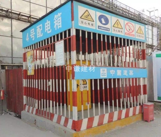 3.雙層硬防護間的防護棚外立面掛藍底白字:加強安全用電,防止觸電傷害等安全警示語,操作規(guī)程牌,帽頭設置建筑企業(yè)標識;