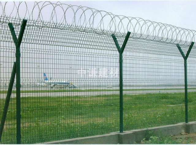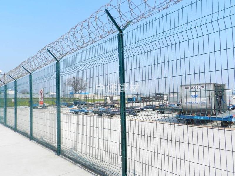 機場護欄網(wǎng)被廣泛應用在:機場、軍事基地、監(jiān)獄等高安全場所的隔離防護、美化及防翻越工程!